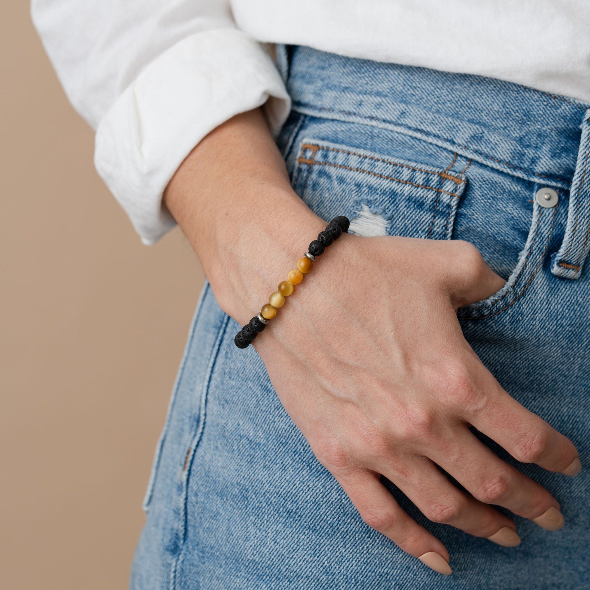 Natural Yellow Tiger Eye Stone and Black LavaCourage, Strength, Protection, Integrity, Abundance